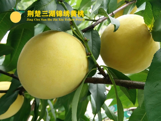 荆楚三湖锦绣黄桃以甜、大、脆、圆、黄、香而闻名于世。荆楚三湖锦绣黄桃外观漂亮、表面光洁、色泽艳丽、果形整齐匀称、果面均呈金黄色,果肉均属金黄色,果核均属红心,果肉甜美水分足、甜度高、清爽可口。